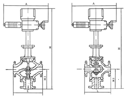 四、ZAZQ、X电动三通调节阀外形尺寸